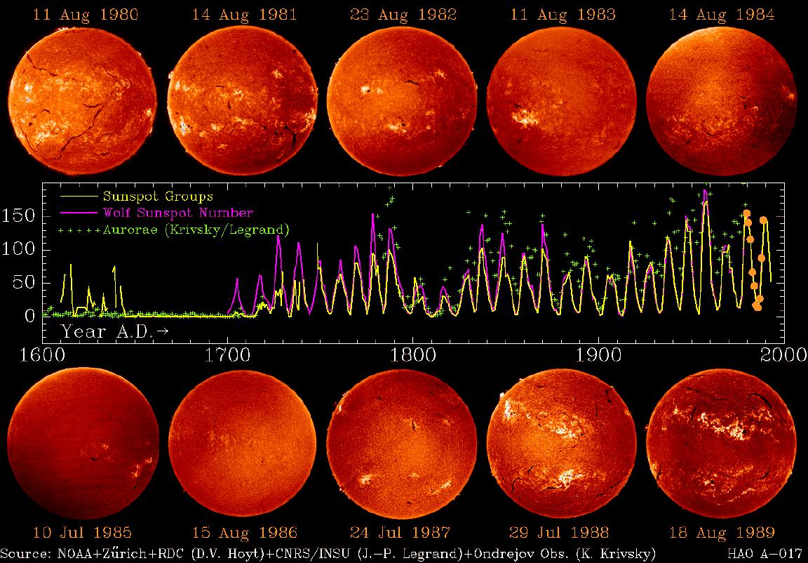 • The sunspot number varies in an 11 year cycle