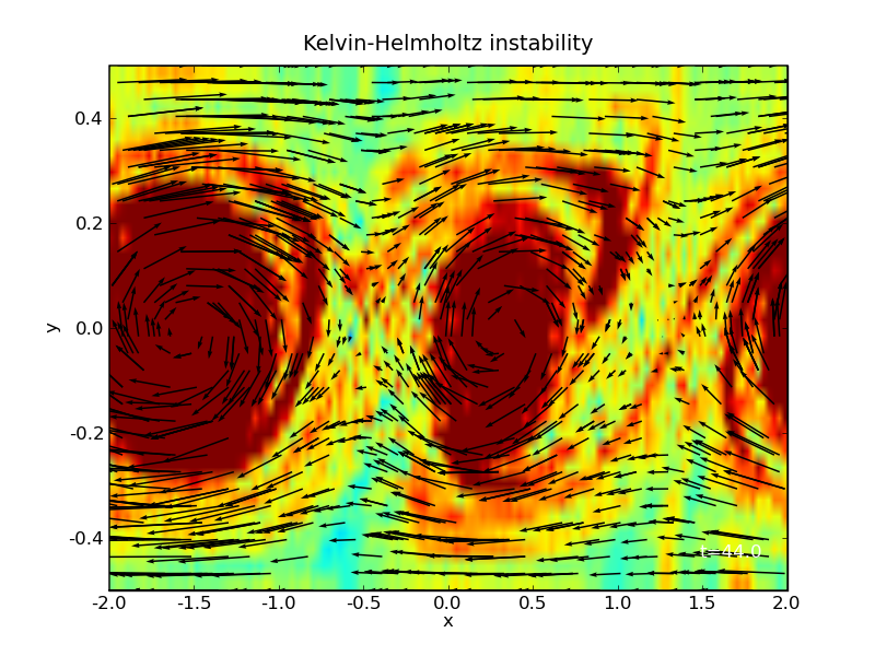 → Working material: KelvinHelmholtz/, KelvinHelmholtz.tar.gz [untar this file by typing tar zxf KelvinHelmholtz.tar.gz] Here we use as initial condition a ux=tanh(y) profile.